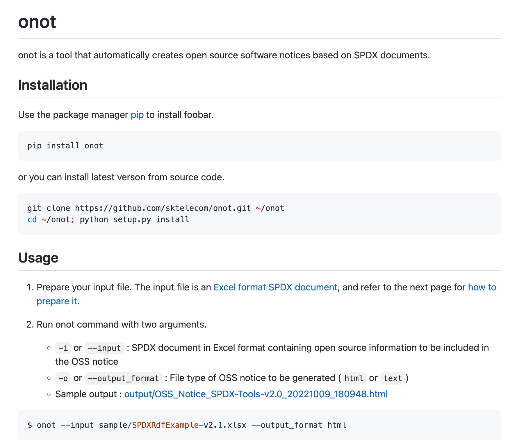 SK텔레콤이 공개한onot은SPDX 문서를 기반으로 오픈소스 고지문을 자동으로 생성하는 도구이다.